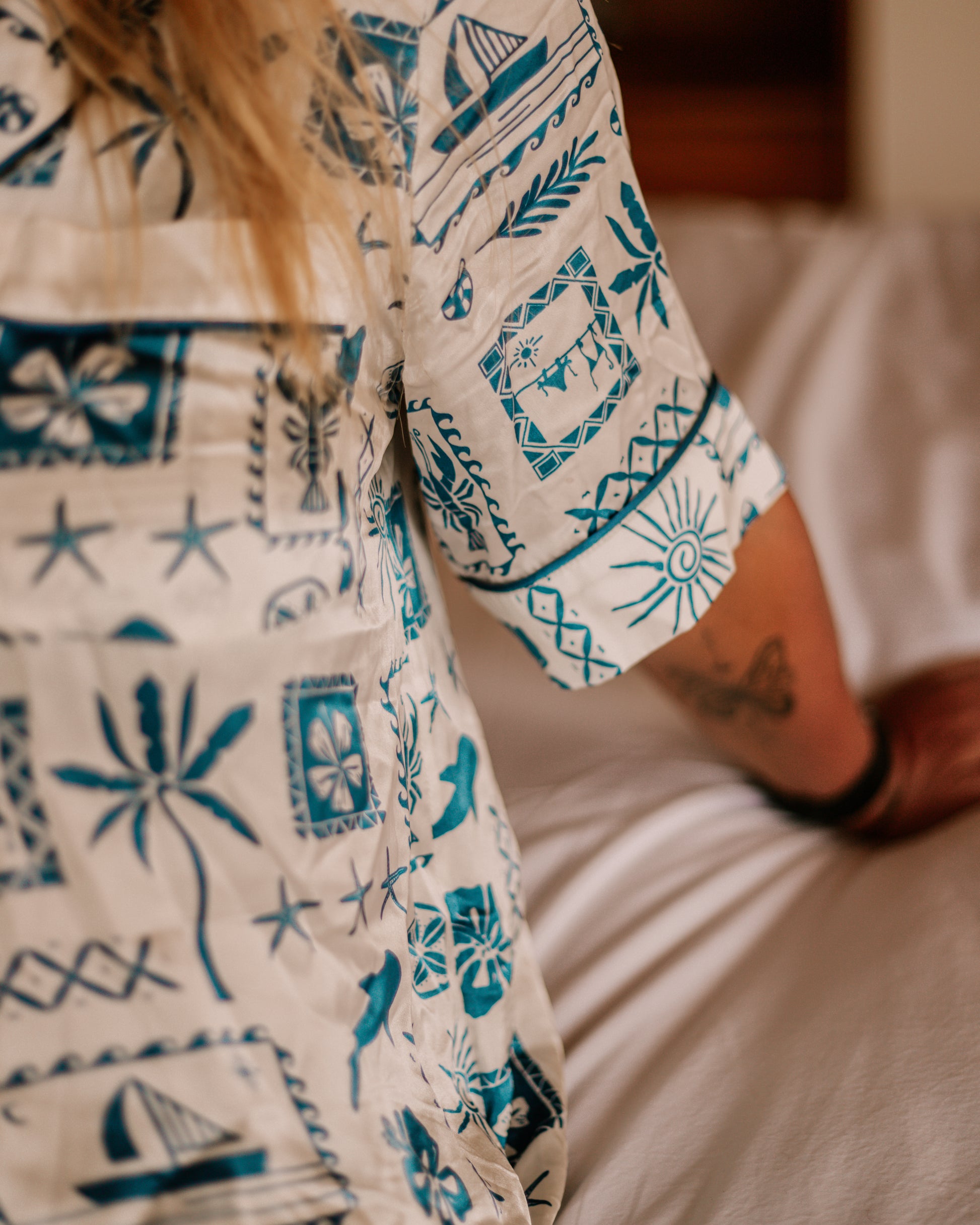 Our sleepwear is designed for a relaxed, floaty fit. If you're between sizes we recommend sizing down as the shorts have stretch, and the top is long. If you prefer extra movement for lounge-room dancing, then size up!